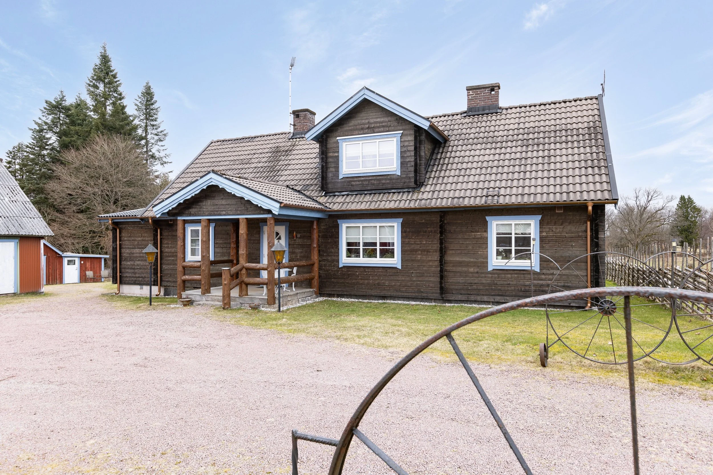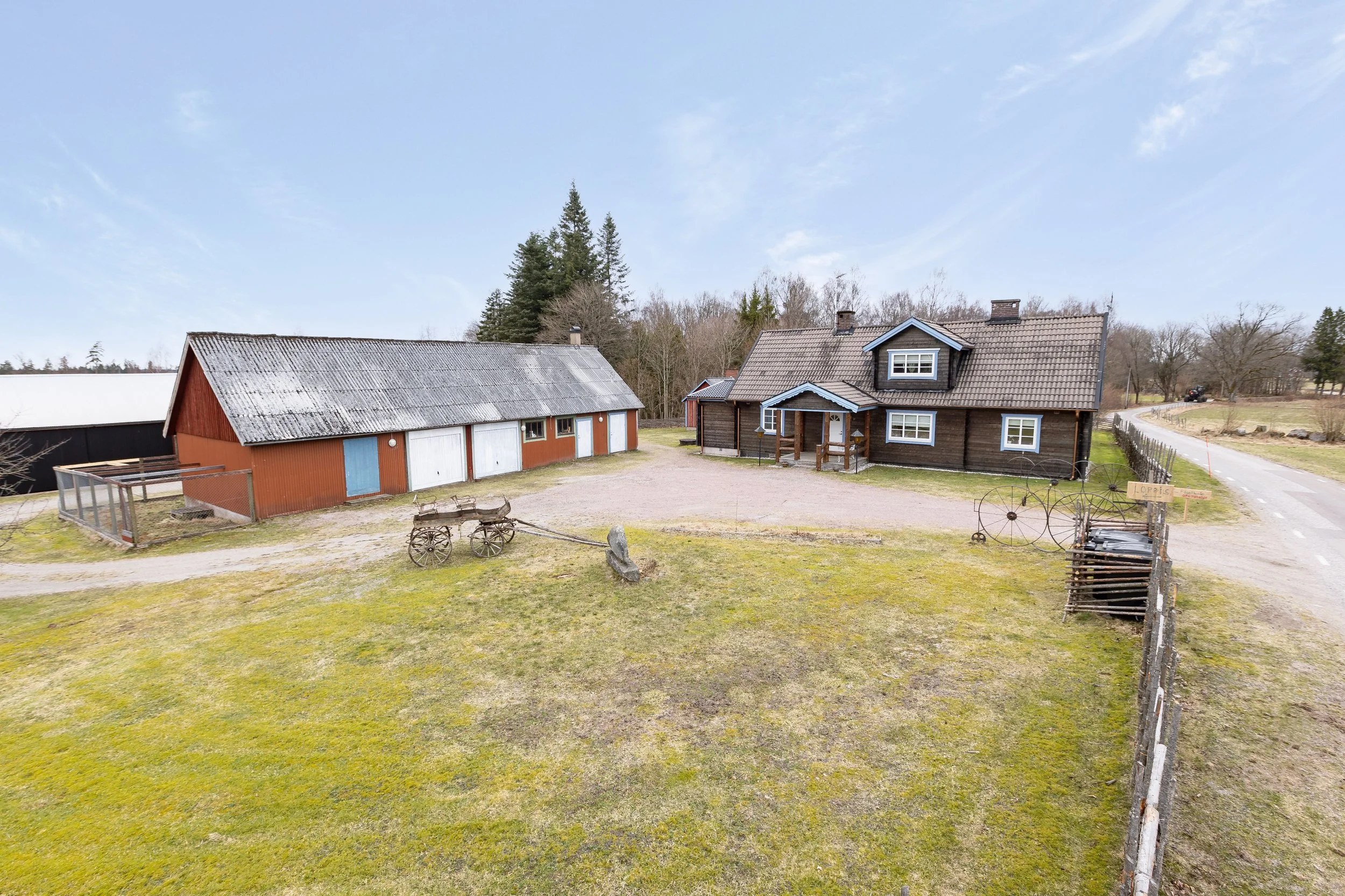 Set in the countryside of the Kronoberg region, this property forms part of a small rural cluster of buildings arranged around a shared yard-like setting. The plot extends over a generous area and is surrounded by open landscape and natural surroundings.